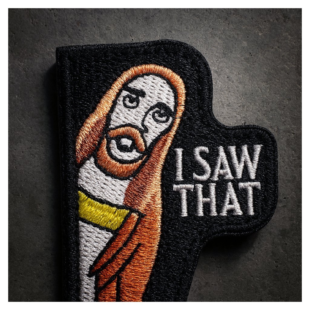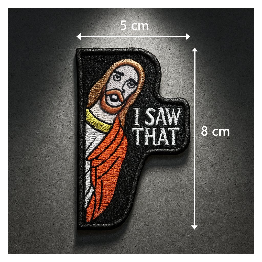 Motiv „Ježíš to viděl“ patří do kategorie humorných morale patchů, které dávají jasně najevo, že bereš věci s nadhledem – ale pořád víš, že na tebe někdo „dohlíží“.