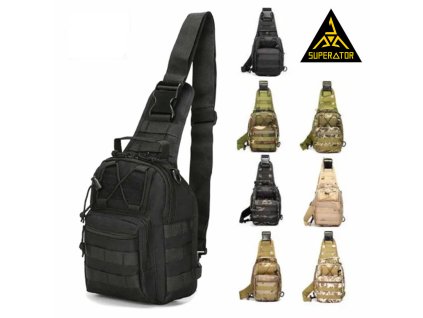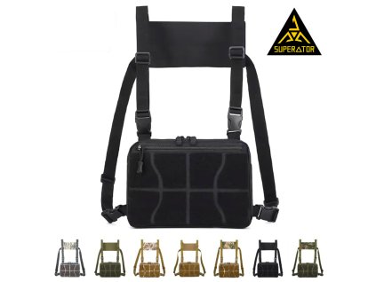 Taktická hrudní brašna. Suchý zip, velcro. Oxford. Zapínání na zip. Vyznačuje se voděodolností.