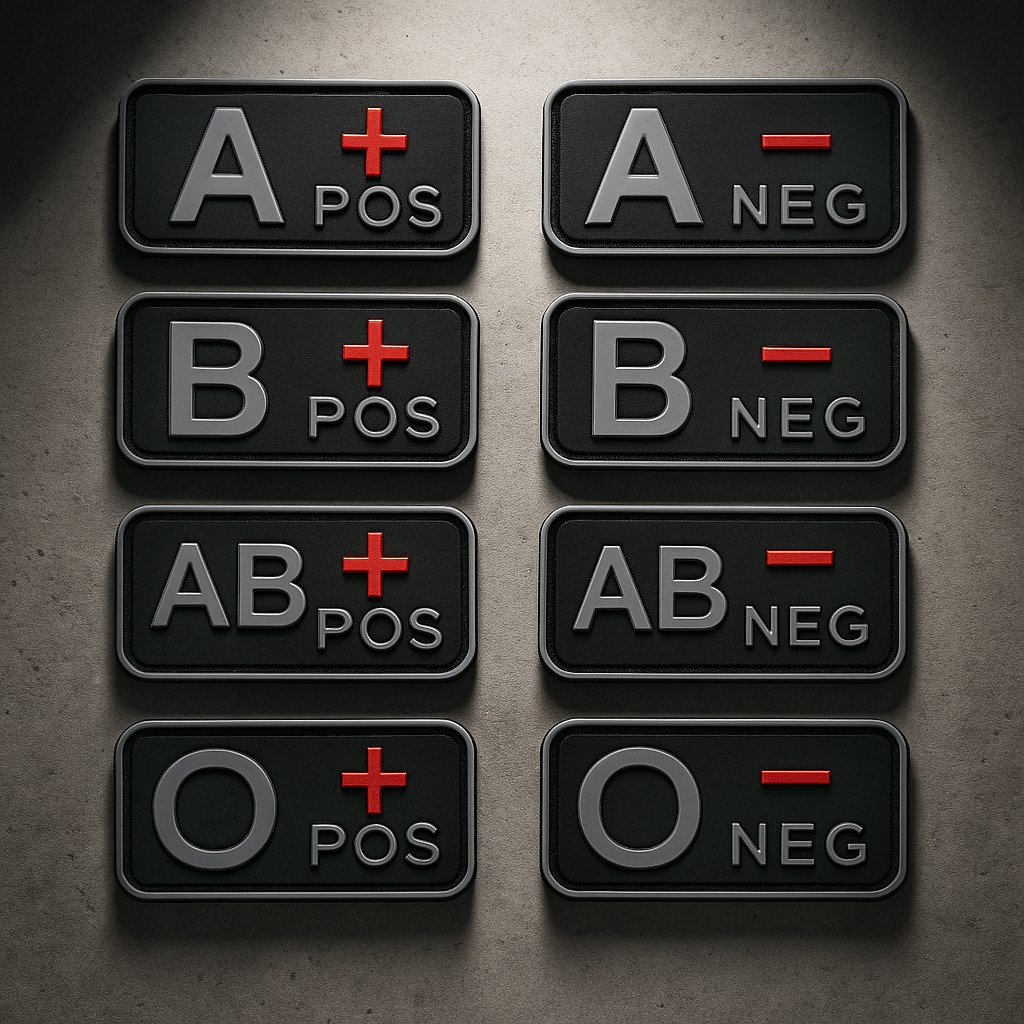 | Určení: | Označení krevní skupiny na výstroji, IFAK, batohu, vestě či bundě pro rychlou identifikaci. |