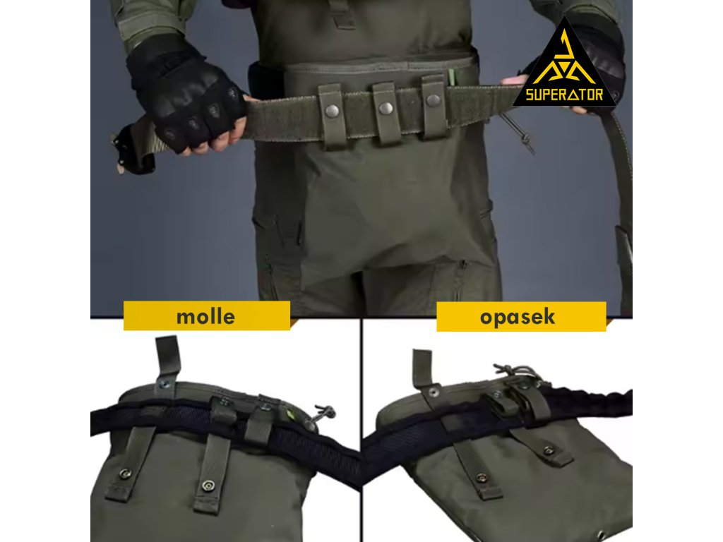 - Uchycení: MOLLE/PALS + opasek (UTX patenty/Velcro)