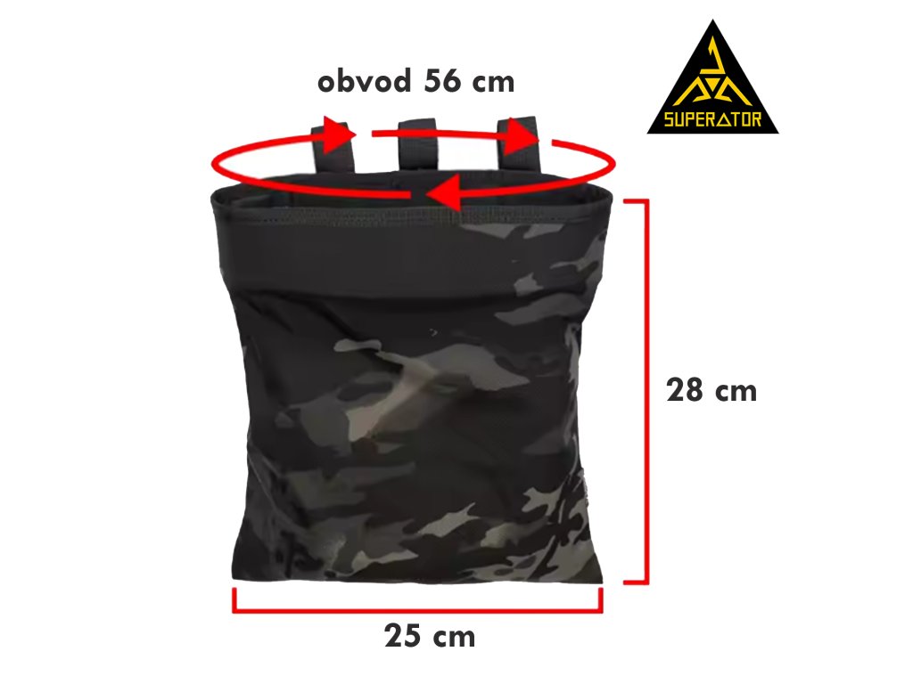 | Konstrukce: | Velký skládací dump pouch (odhazovák) na prázdné zásobníky a EDC; vyztužené hrdlo pro rychlé vkládání. |