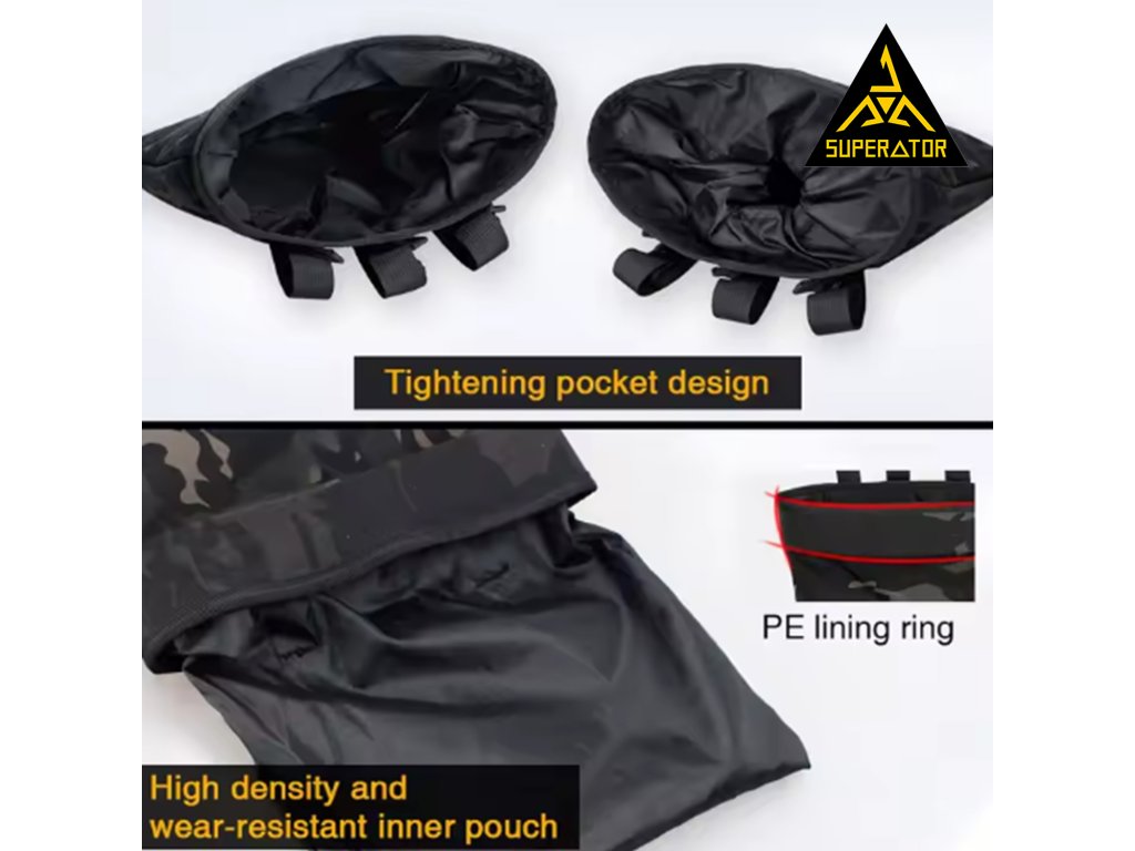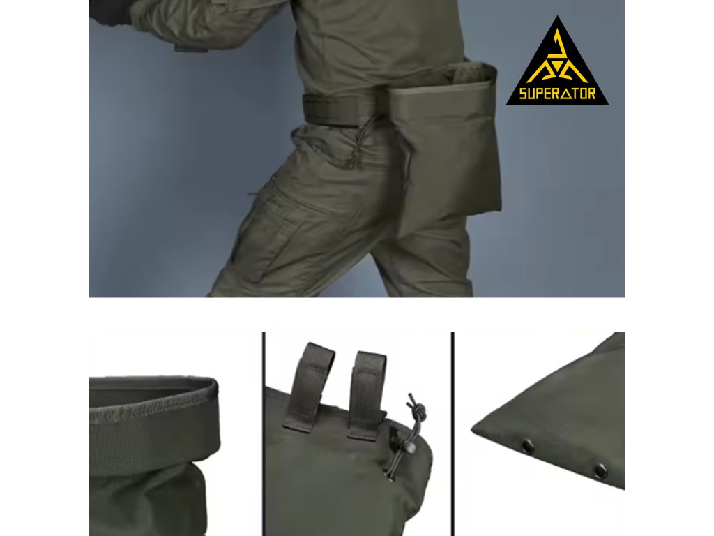 Odhazovák na velké zásobníky 100% Nylon. Vysoce kvalitní pouzdro MOLLE nebo opasek. Voděodolný vak se stahovací šňůrkou.