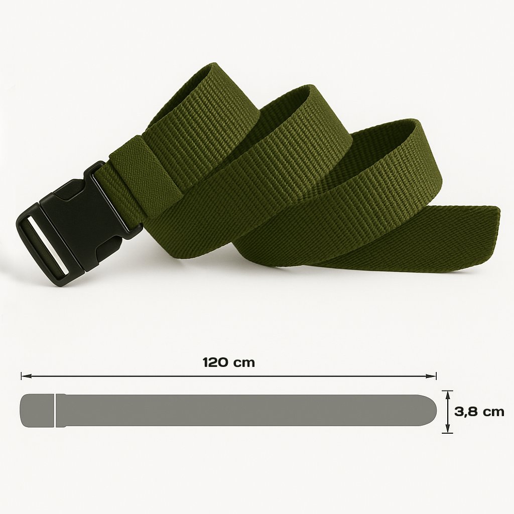 Opasek 100% nylon. Délka 120 cm, šířka 3,8 cm. Klasická plastová spona.