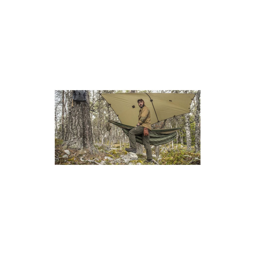 Helikon Supertarp Small je univerzální bivakovací plachta, celta nebo basha dle zažité terminologie. Je určená pro stavbu nouzového přístřešku či pozorovačky. Celkem devatenáct upevňovacích bodů umožňuje řadu nastavení a konfigurace celty v závislosti na dostupném terénu a podmínkách. Nízká hmotnost je dána použitím lehkého zátěrového ripstop materiálu. Zesílené montážní oka a podlepené švy zaručují vysokou pevnost a odolnost proti vodě. Zip kapsa (obal na celtu) umožňuje snadné skladování bivakovací celty, i když je mokrá. Několik popruhů usnadňuje připnutí na batoh. Přiložený kompresní obal umožňuje přepravu stlačeného a složeného Supertarpu.