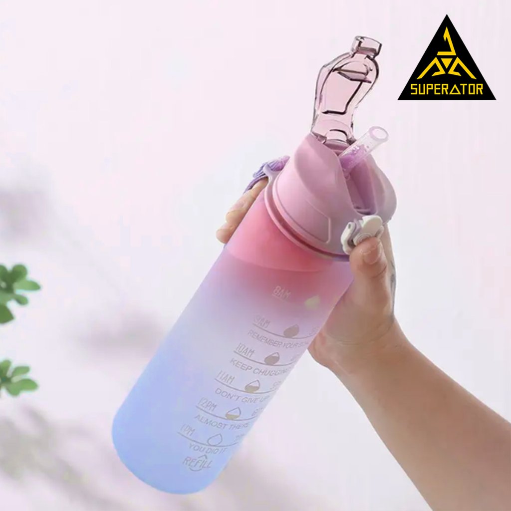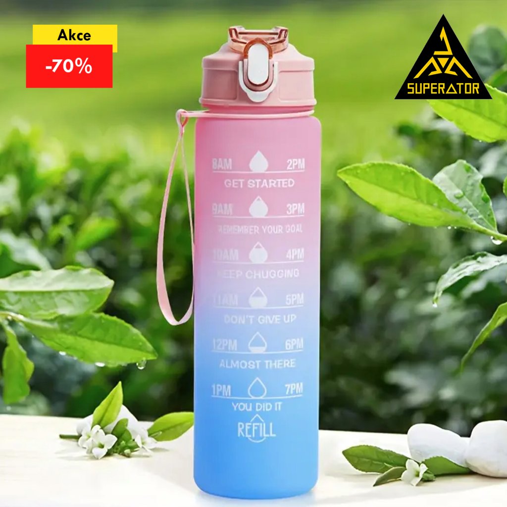 Sportovní láhev Tritan 750 ml s brčkem – BPA Free, časové značky pitného režimu, neprotékavé víčko (modro-růžový gradient) | skladem v ČR | rychlé odeslání | silikonové brčko | fitness | běh | turistika | škola |