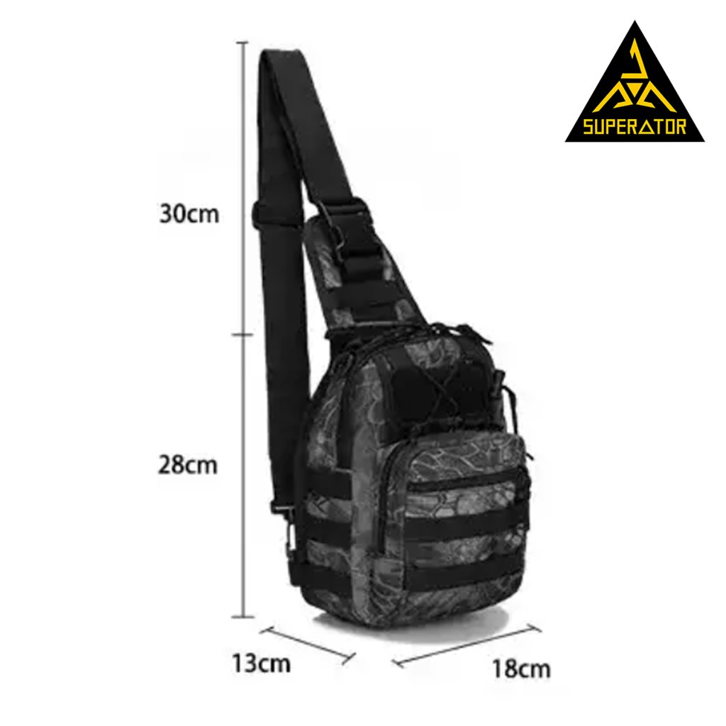 Univerzální taktická hrudní brašna / taška přes rameno (cca 5 l) z voděodolného nylonu. Díky MOLLE a přednímu Velcro panelu ji snadno rozšíříš o kapsy nebo označíš jmenovkou/patchi. Rozvržení kapes drží po ruce mobil, peněženku, klíče, doklady, rukavice i základní výbavu na střelnici.