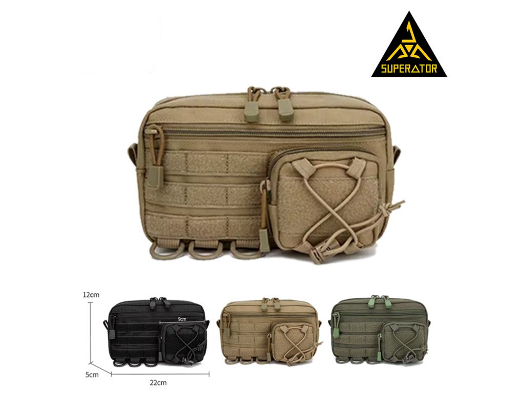 Taktická hrudní brašna. Suchý zip, velcro. Oxford. Zapínání na zip. Vyznačuje se voděodolností.