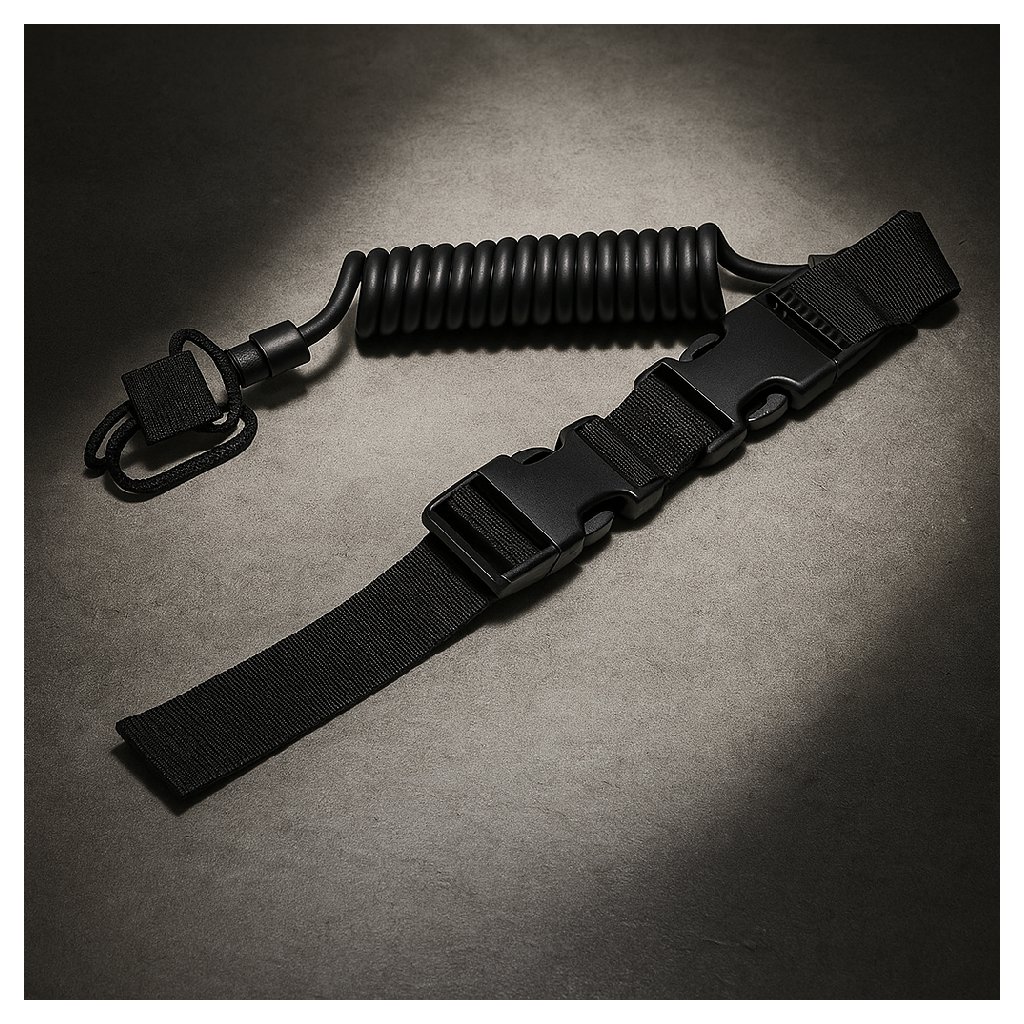 Pružný jistící popruh, který zabrání ztrátě nebo pádu vybavení a zároveň neomezuje v pohybu. Díky spirále a rychloupínání je ideální pro zbraň, nářadí a zdravotnické pomůcky.