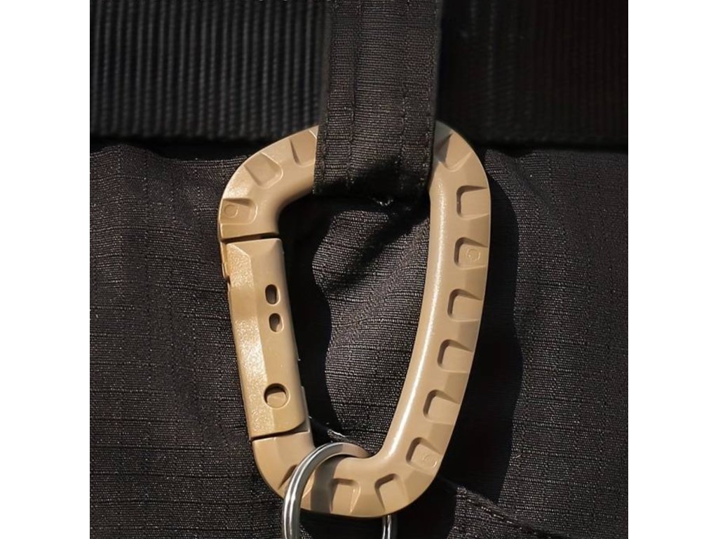 Tahle taktická karabina z odolného ABS je skvělá pro každodenní uchycení výstroje na batoh, vestu nebo opasek. Oproti kovu je lehčí, necinká a lépe se ovládá i v rukavicích. Tvar D-ring s širokým otvorem umožní rychlé zavěšení a vysazení rukavic, svítilny, klíčů či chemického světla.