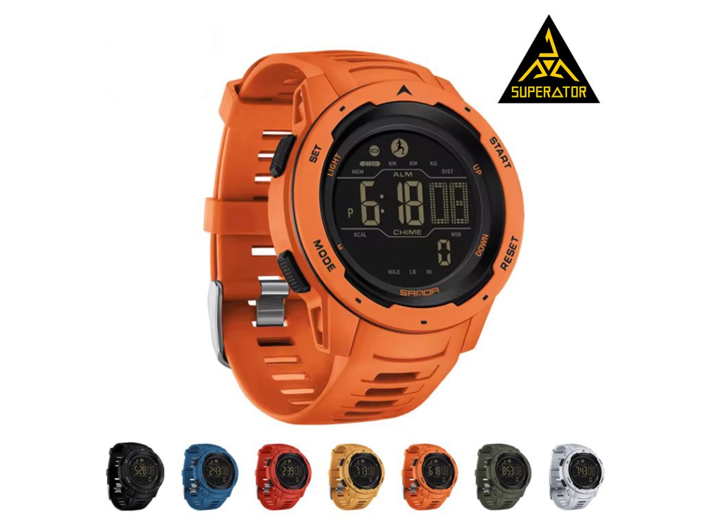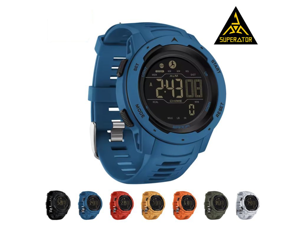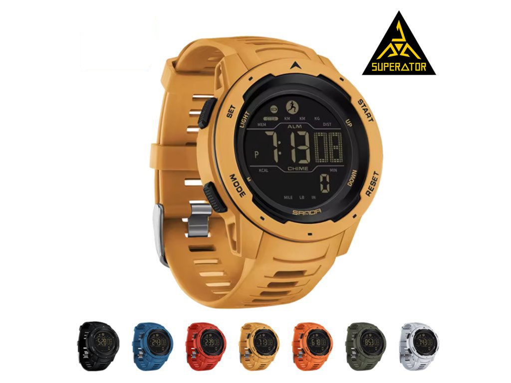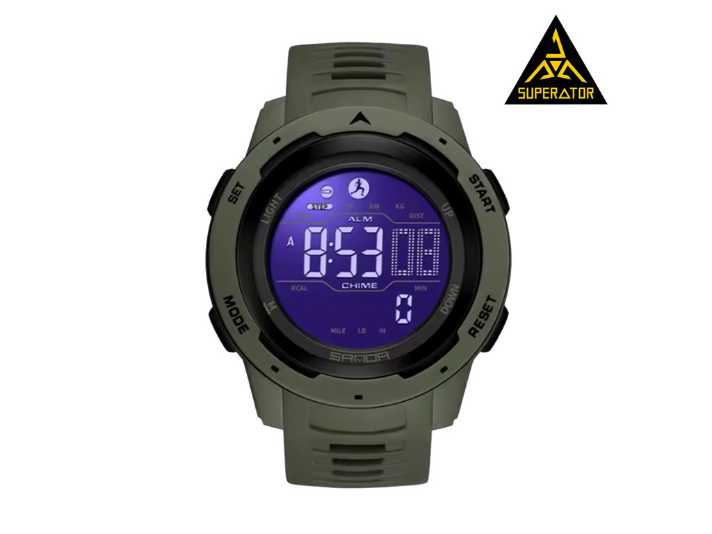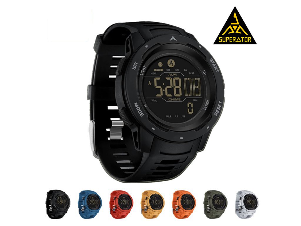 Hodinky 5ATM / 50M taktické, vodotěsné. Krokoměr, kalorie, stopky. Displej FSTN. Odolné proti otřesům. Sportovní, military.