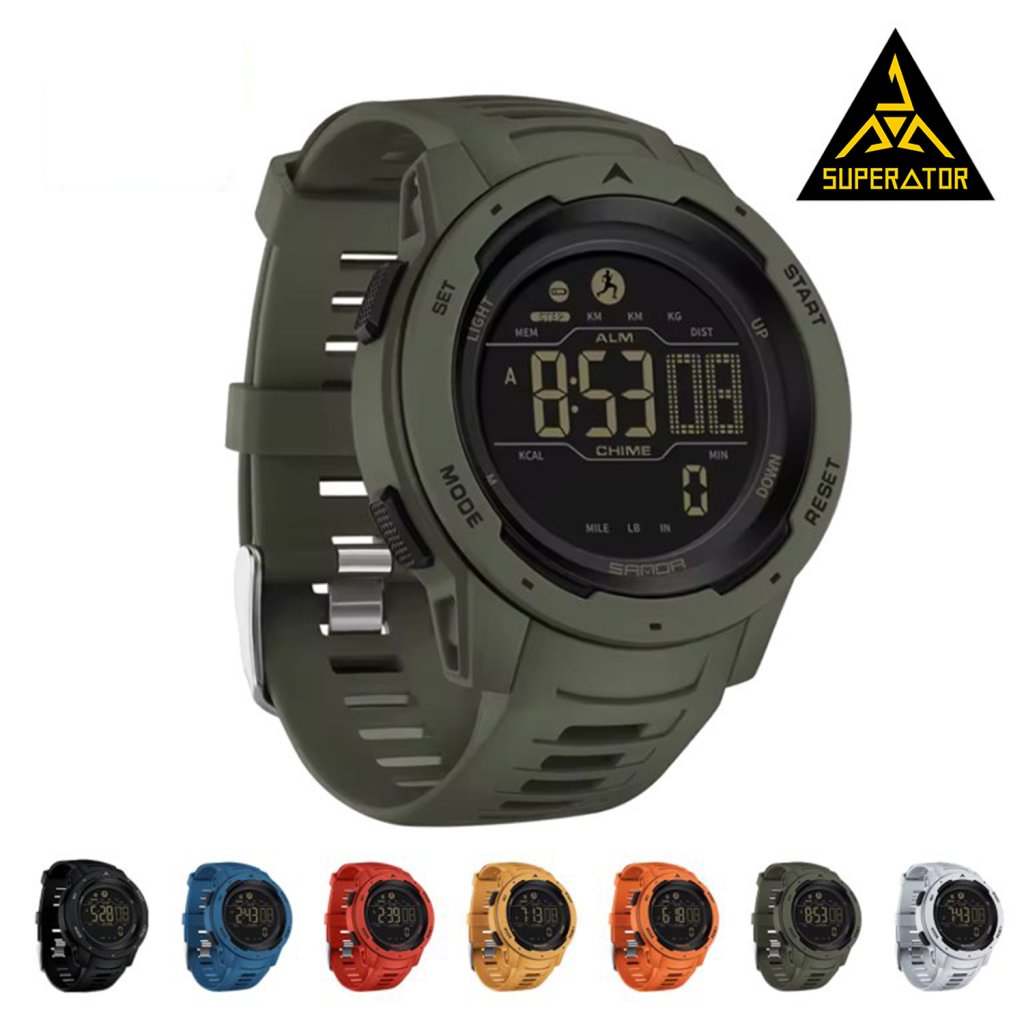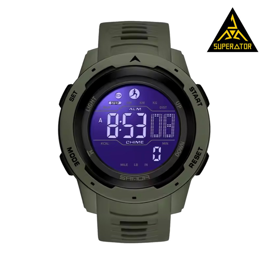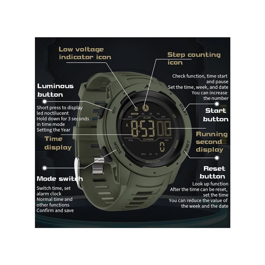 Taktické digitální hodinky SANDA 2145 – 5 ATM/50 m, FSTN displej, krokoměr, stopky, duální čas, EL podsvit (Ø 45 mm)