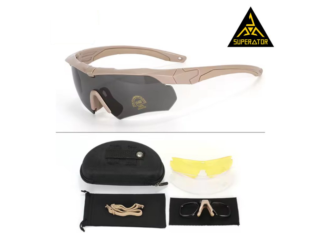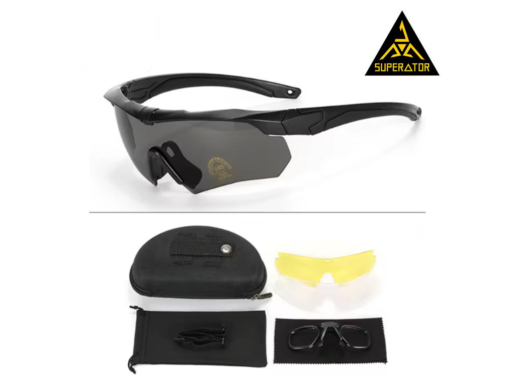 | Co to je: | Lehké taktické ochranné brýle se třemi výměnnými zorníky (černý polarizační, žlutý, čirý), s dioptrickou vložkou (RX insert), UV400 a pevným pouzdrem; univerzální pro střelnici, airsoft, cyklistiku, rybaření i řízení. |