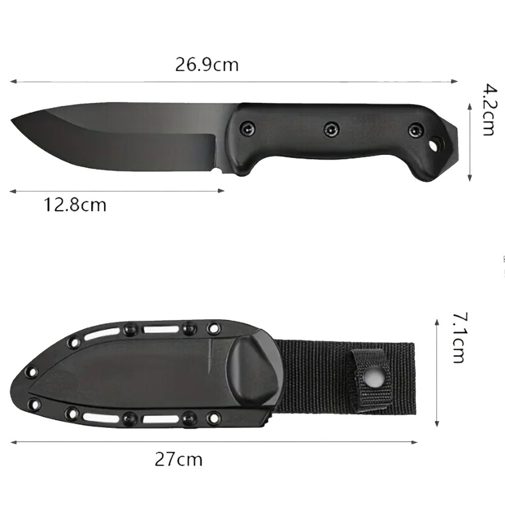 Taktický nůž, pouzdro Kydex. 5mm široká čepel 1905 Cro-Van High Carbon ocel, Tvrdost 60HRC, full-tang, rukojeť Nylon+Glass fiber