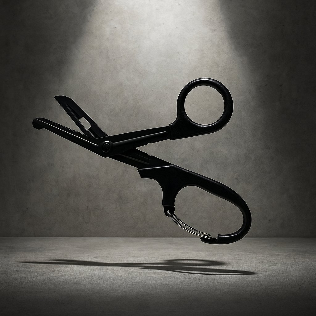 - Příprava: Nůžky měj připnuté karabinou na opasku nebo uvnitř IFAK pouzdra, aby byly okamžitě po ruce.