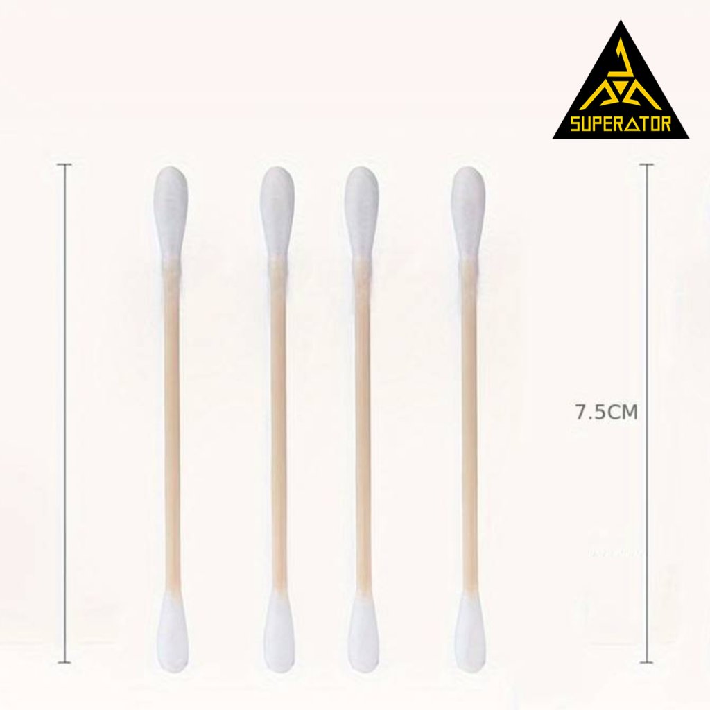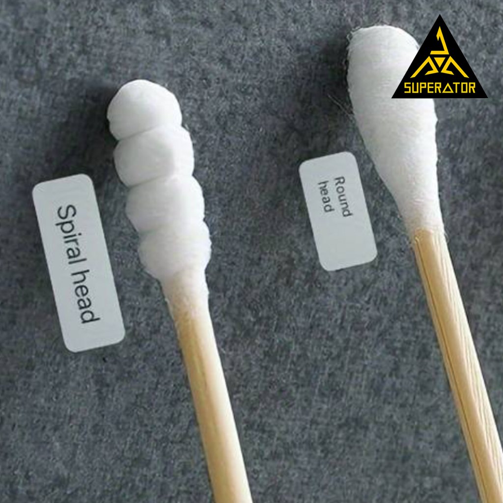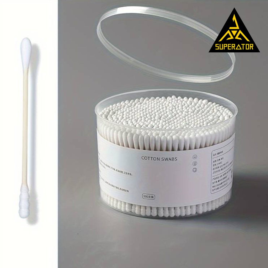 Box vatových tyčinek na čištění 500 ks. Na jednom konci oválné na druhém spirála.