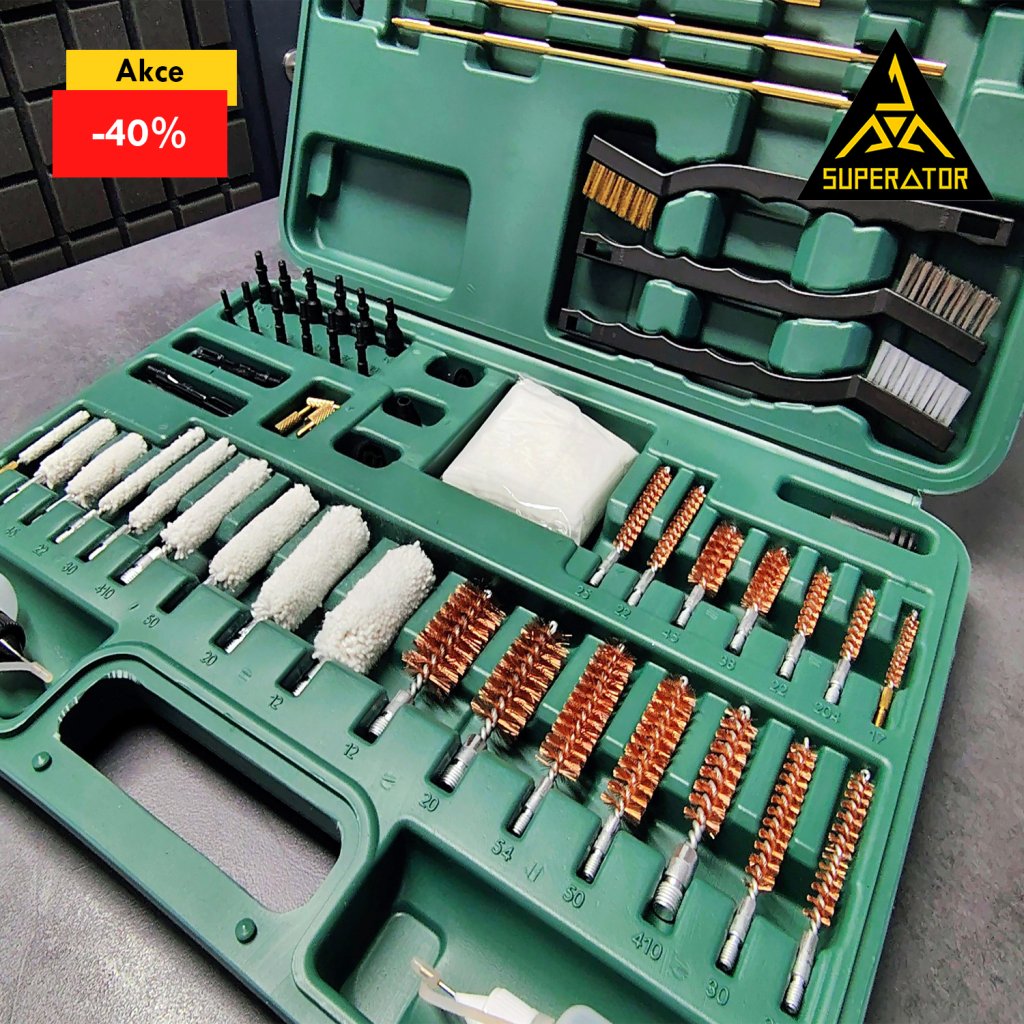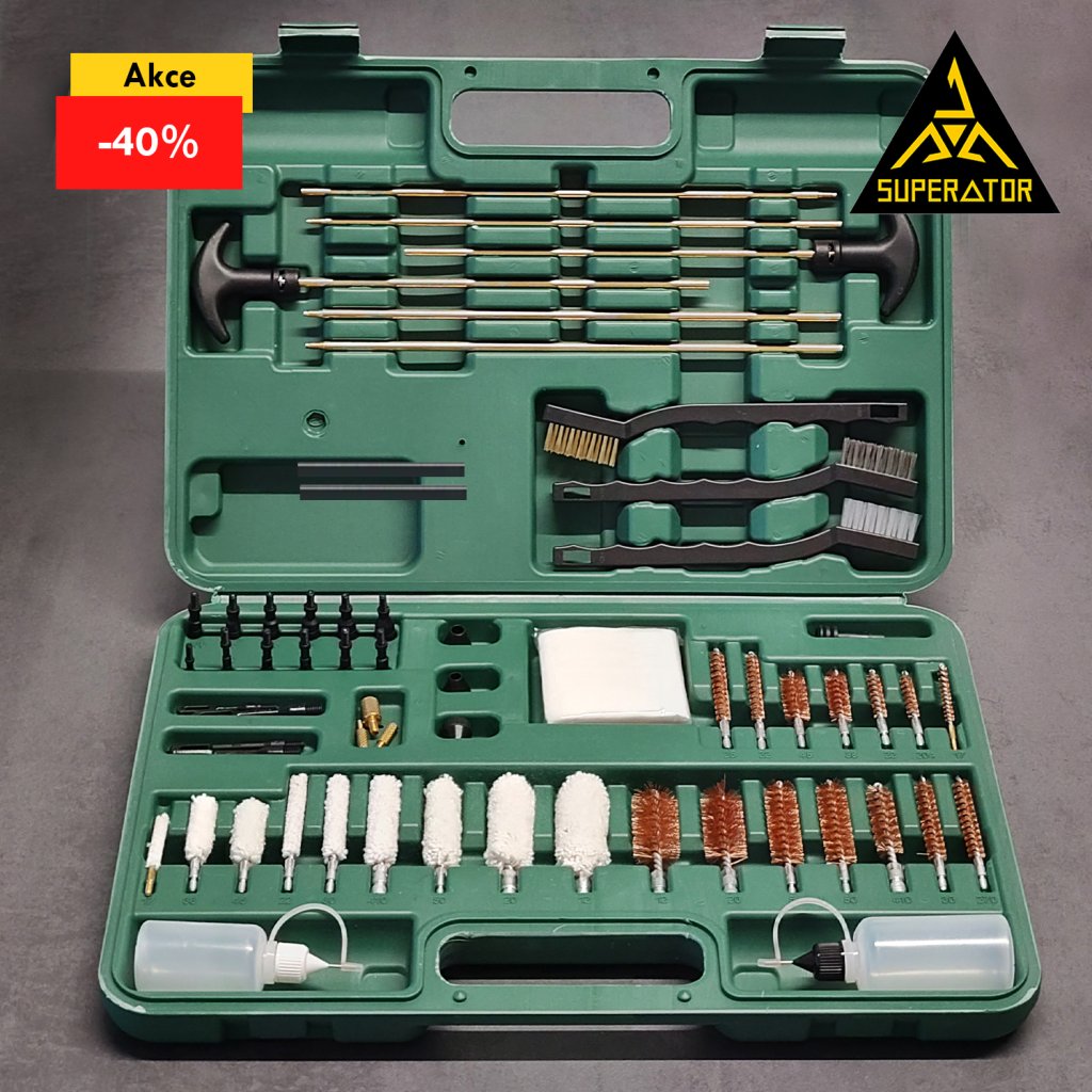 Velká univerzální sada DELUXE na čištění zbraní, 62 ks, pevný plastový kufr.