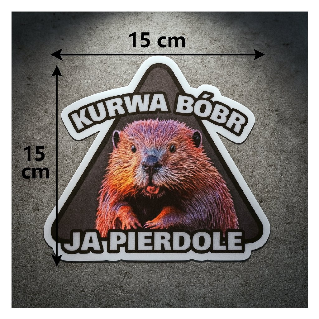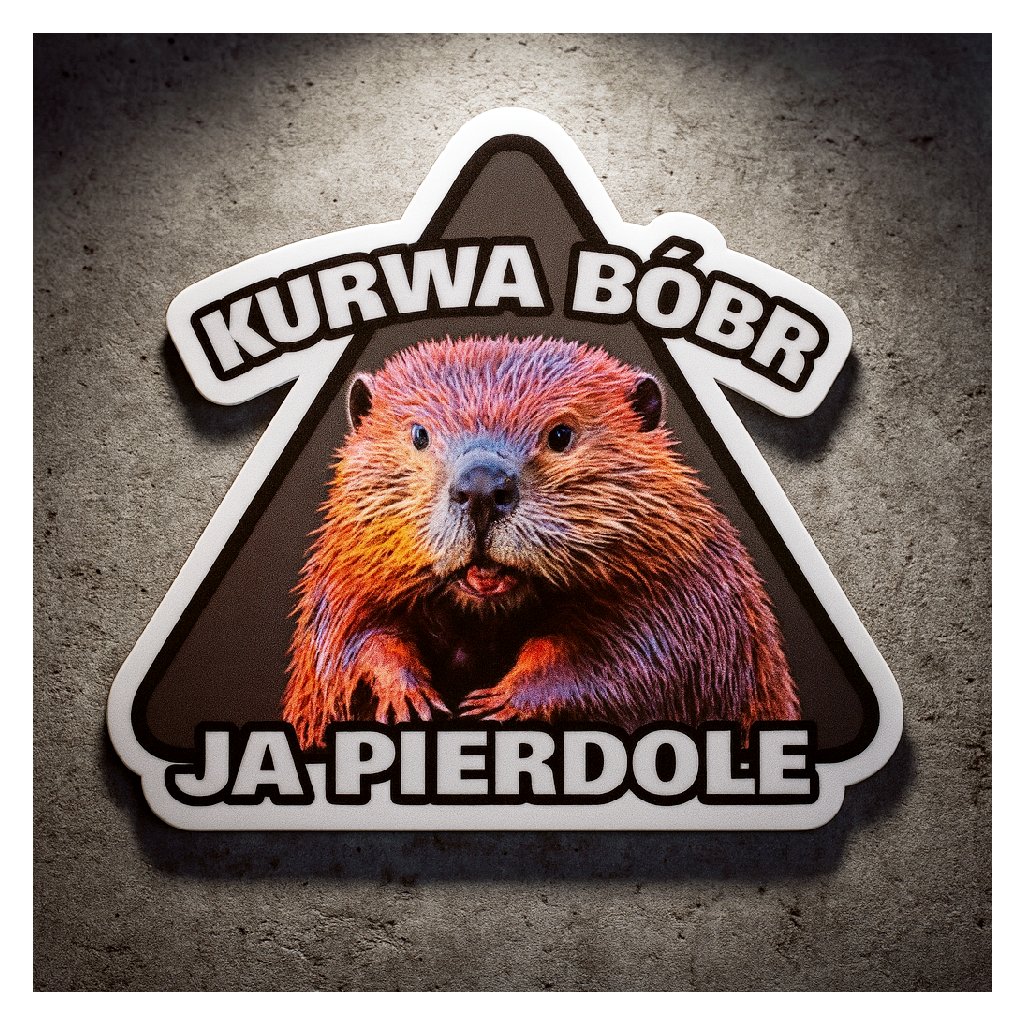 Trojúhelníková vinylová samolepka na auto „BÓBR KURWA, JA PIERDOLĘ“ je vtipná, ale hodně expresivní nálepka inspirovaná virálním polským memem. Díky tvaru výstražného trojúhelníku a velkému bobrovi uprostřed funguje jako parodie na dopravní značku – jen místo „pozor zatáčka“ hlásí „pozor, bobr a pořádnej bordel“.