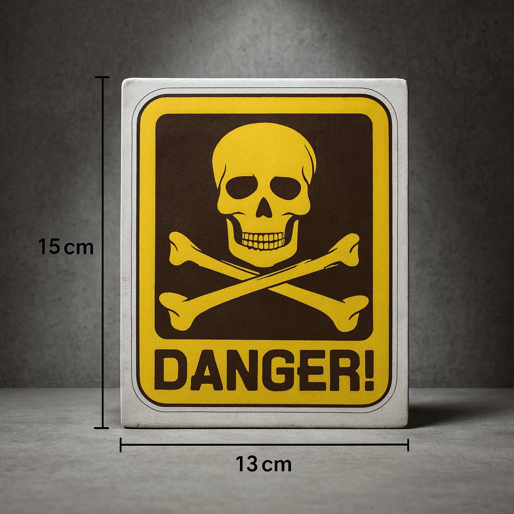 | Co to je: | Odolná vinylová samolepka ve „warning“ stylu s nápisem DANGER (česky NEBEZPEČÍ) a motivem lebky se zkříženými hnáty. |