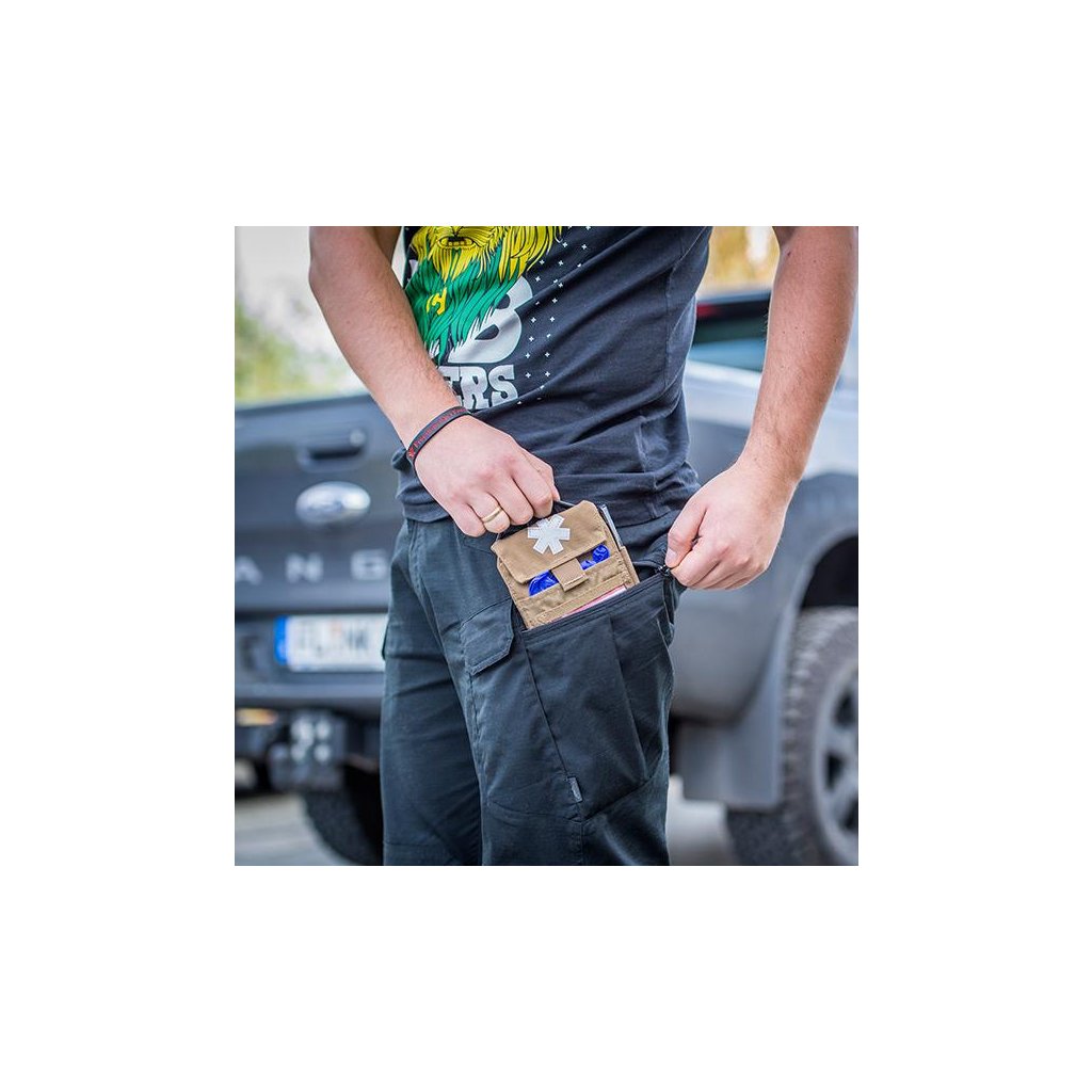 Zdravotní kapsa POCKET MED INSERT je insert z řady pouzder Helikon-Tex na zdravotnický materiál. Slouží primárně jako organizér na základní zásobu léků, náplastí, rukavic a podobných drobných zdravotních doplňků, které chcete mít po ruce-v kapse u kalhot či batohu. Konstrukce se otevírá jako peněženka pro snadný přístup k vybavení. Vnitřní strany jsou vybaveny přihrádkami, které udrží vaše vybavení roztříděné. Zdravotnická reflexní hvězda umožňuje rychlou identifikaci i v zhoršených viditelnostních podmínkách.